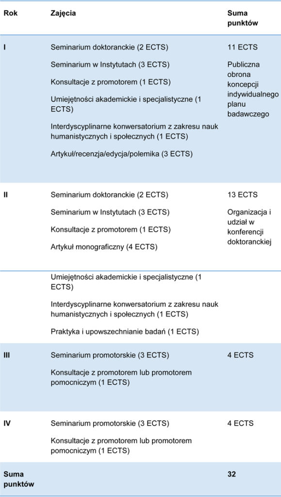 1. W trakcie realizacji programu kształcenia doktorant zobowiązany jest uzyskać co najmniej 32 punkty ECTS.